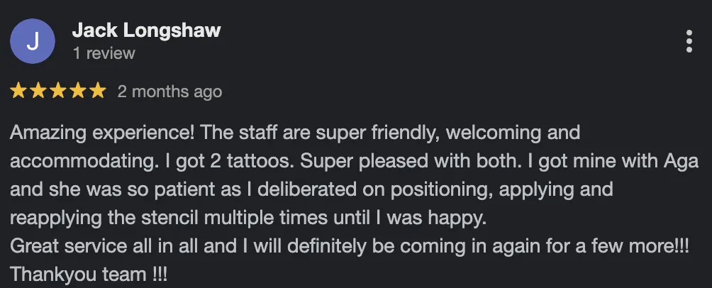 We will prepare you for your tattoo session in the best possible way, and will create a custom design for you at a later date.